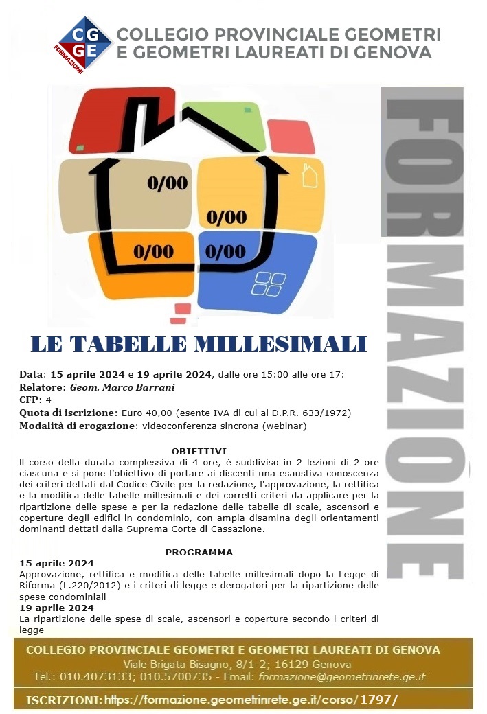 15.04 – 19.04.2024 – Webinar – le tabelle millesimali
