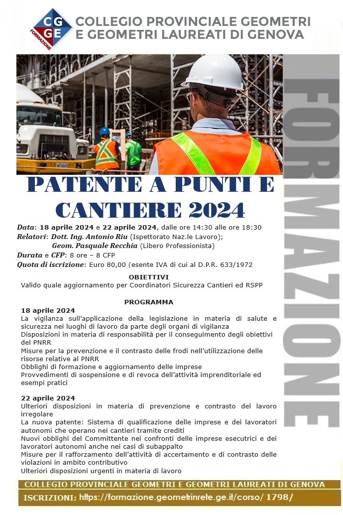 18.04 – 22.04.2024 – Webinar – Patente a punti e cantiere 2024