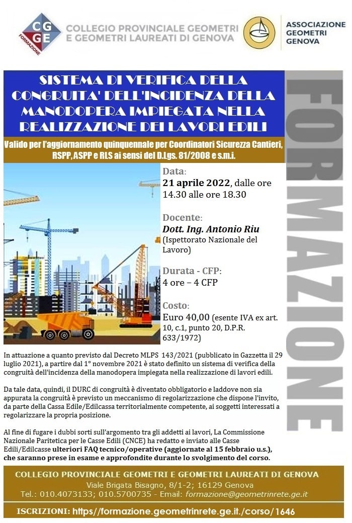 21.04.2022 – Webinar -Sistma di verifica della congruita‘ dell‘ incidenza della manodopera impiegata nella realizzazione dei lavor edili