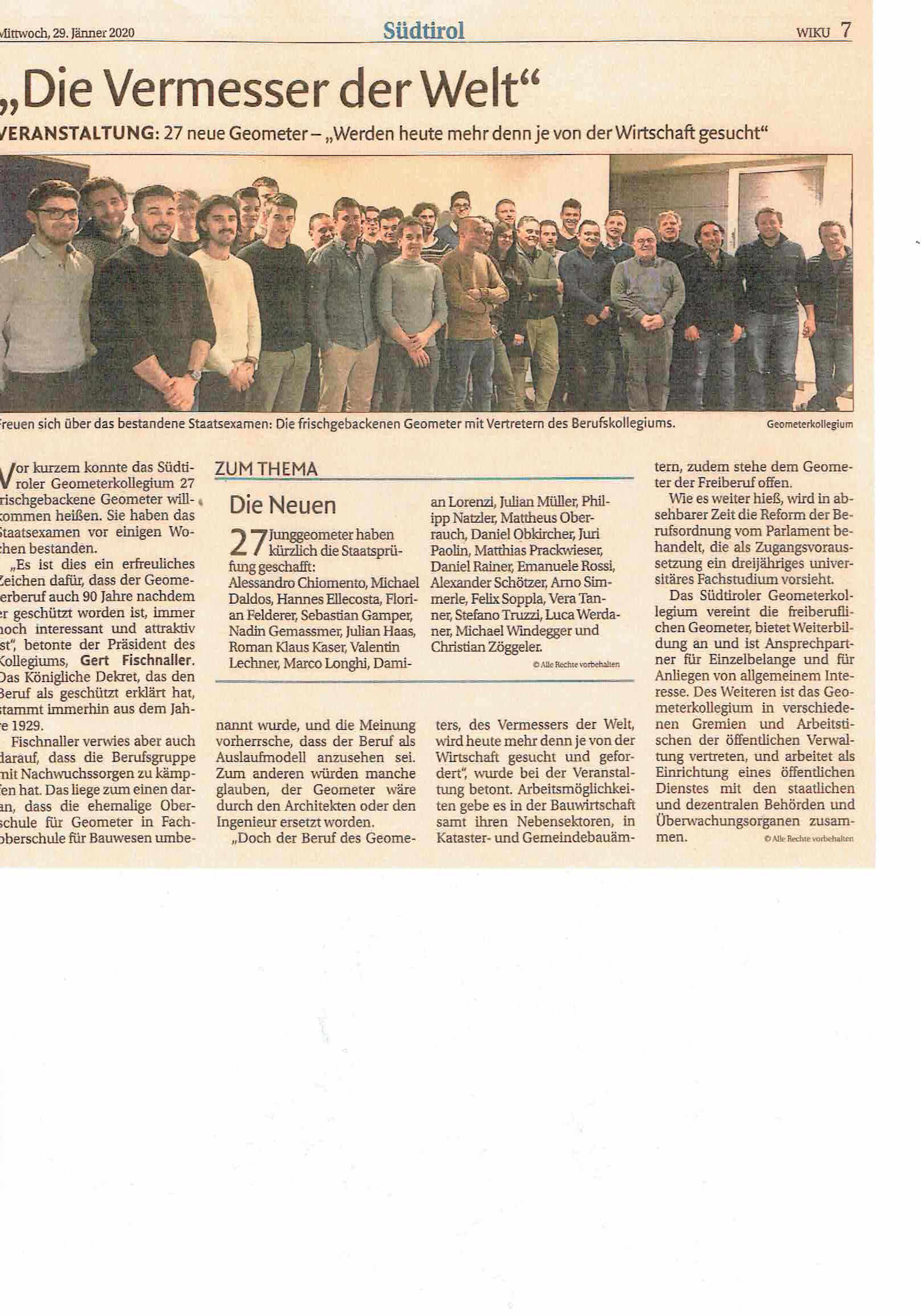 Zeitungsartikel / articolo di giornale WIKU 06.02.2020